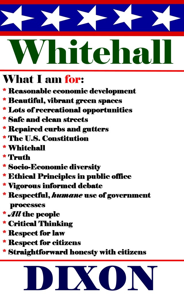 Is the ‘health and safety’ of Whitehall tied to housing and projects brought forth, regardless of their sense or reason or viability? ANY development, ANY schemes and plans MUST be supported FOR the ‘health and safety’ of Whitehall? That wasn’t the case recently when a project’s feasibility was questioned wanting to go up at Rosemore and Langley or when a mechanical operation wanted to open on Main Street.